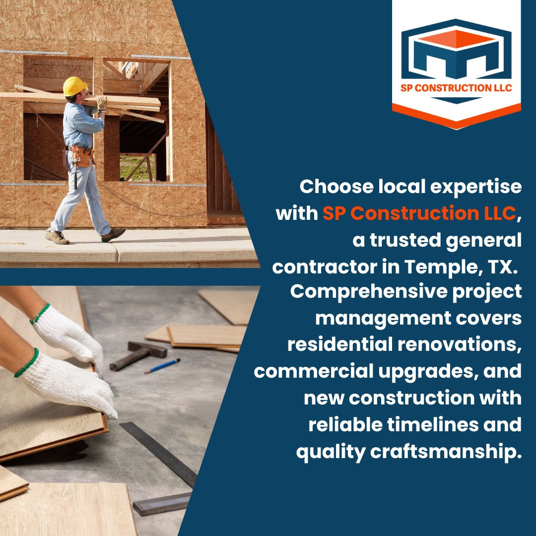 For property owners in Temple, TX, SP Construction LLC provides general contractor services that combine expertise, local knowledge, and dependable project management. The company’s experience allows it to handle residential and commercial construction projects efficiently, avoiding delays and miscommunications. Choosing SP Construction LLC gives clients access to trusted subcontractors, timely material deliveries, and well-organized project coordination.